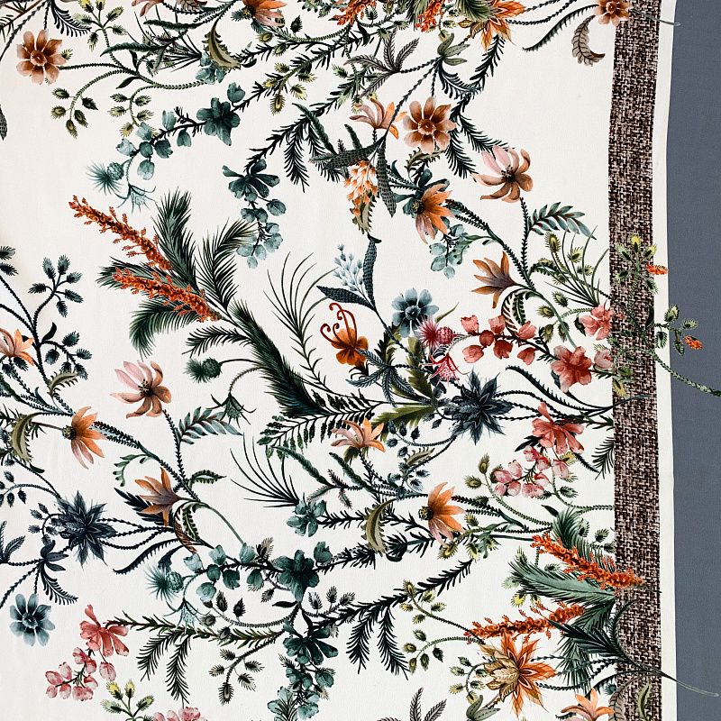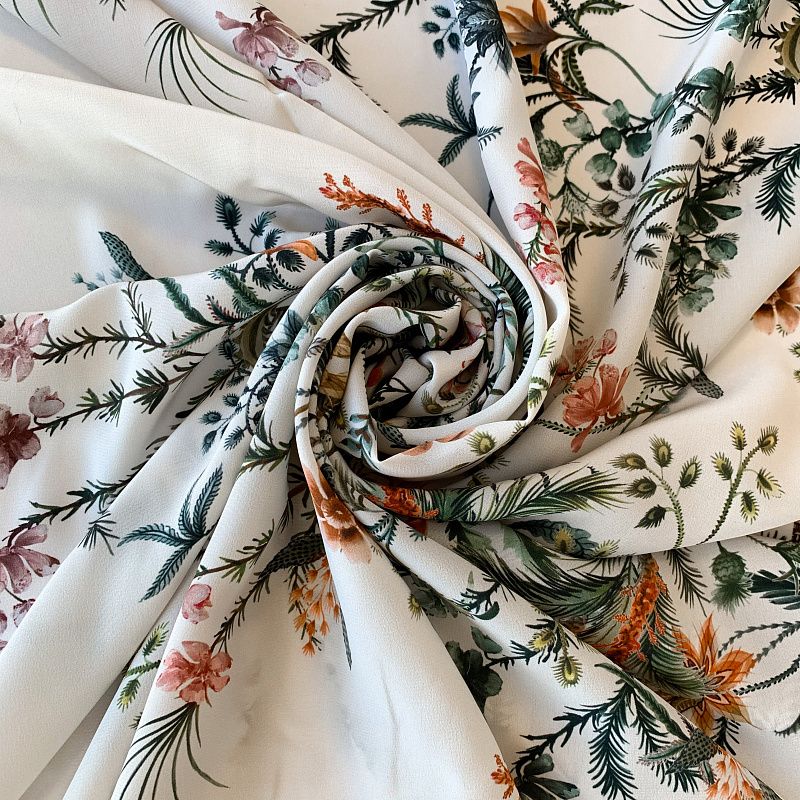 Крепдешин натуральный К32-237 бежево-серый принтованный в Казани