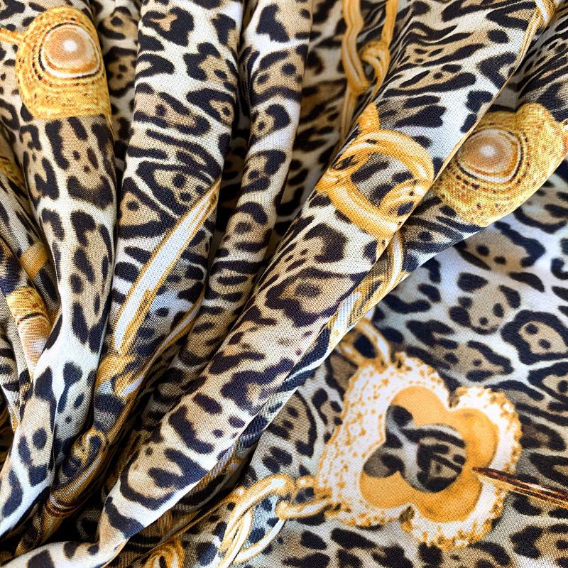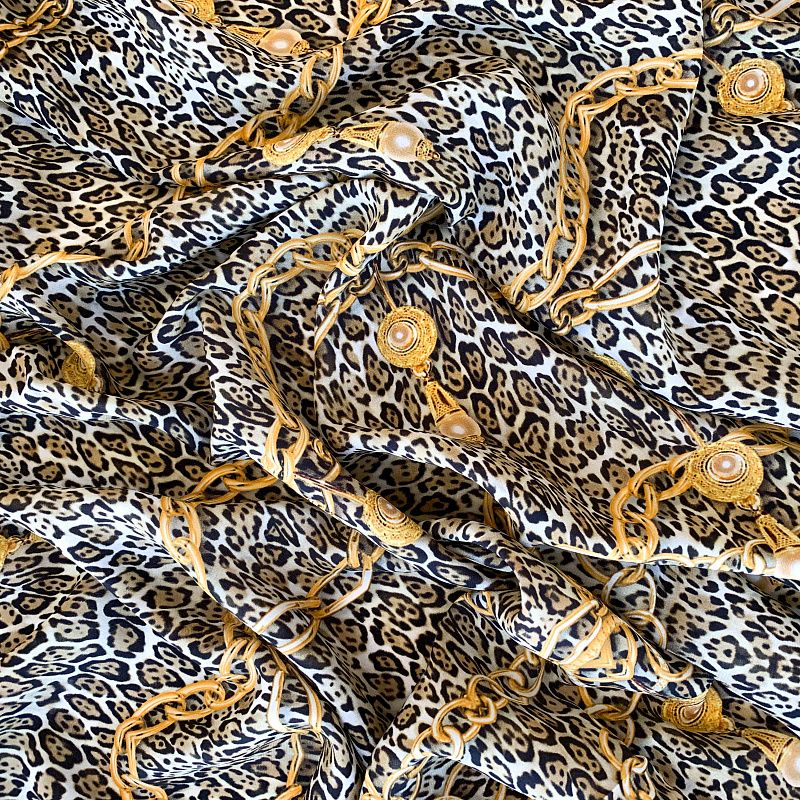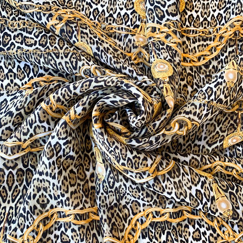 Крепдешин натуральный К32-243 бежево-серый принтованный в Казани