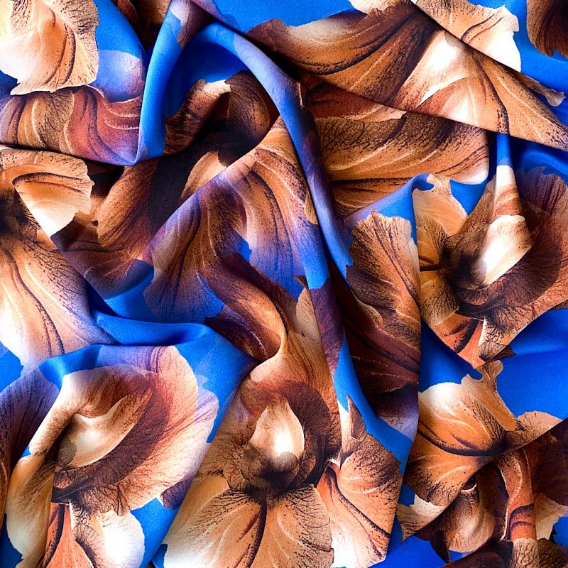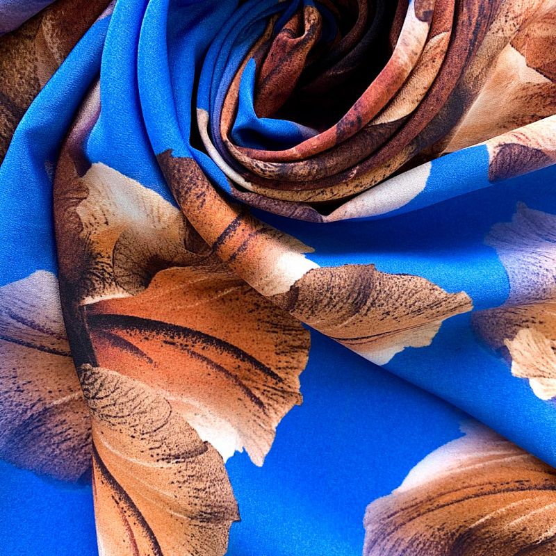 Крепдешин натуральный К32-373 лазурно-синий принтованный в Казани