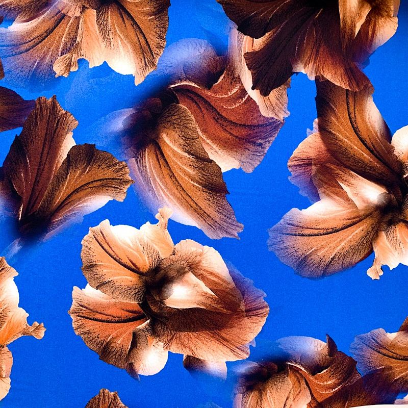 Крепдешин натуральный К32-373 лазурно-синий принтованный