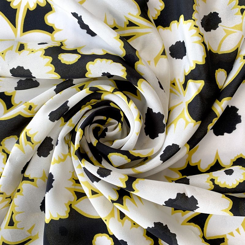 Крепдешин натуральный К32-374 черный принтованный в Казани