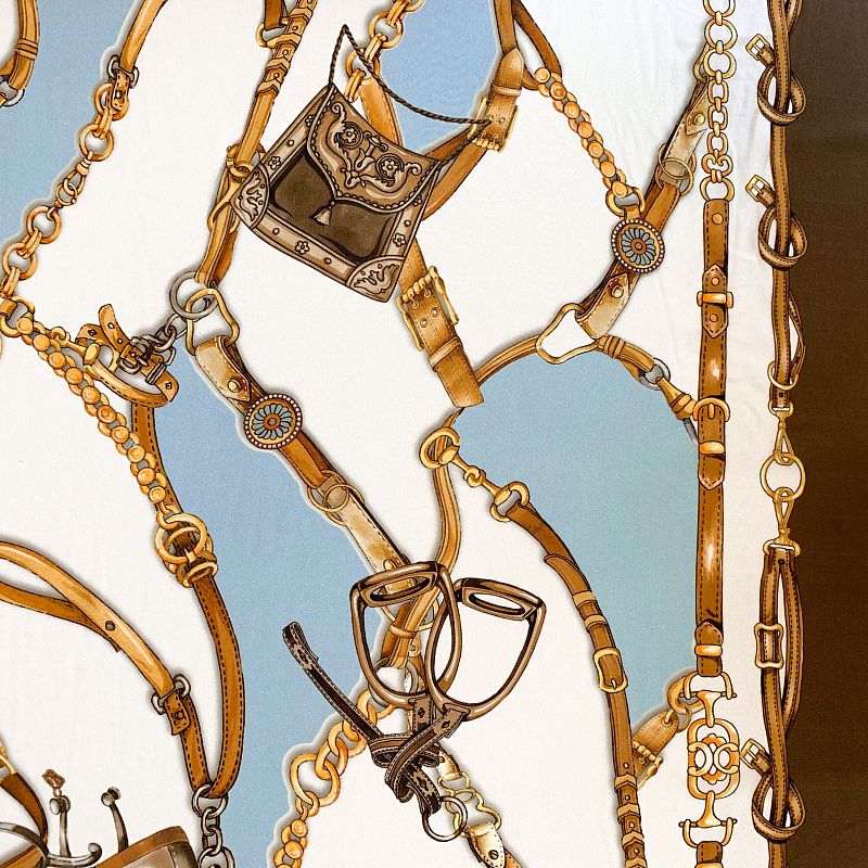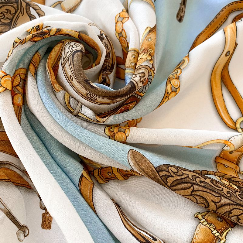 Крепдешин натуральный К32-381 молочно-голубой принтованный в Казани
