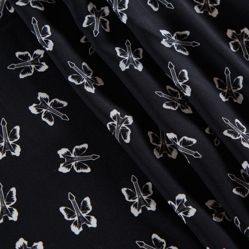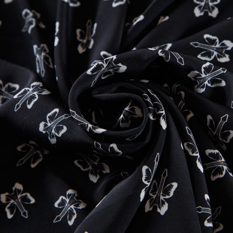 Крепдешин шелковый 028-12507 черный принтованный в Казани