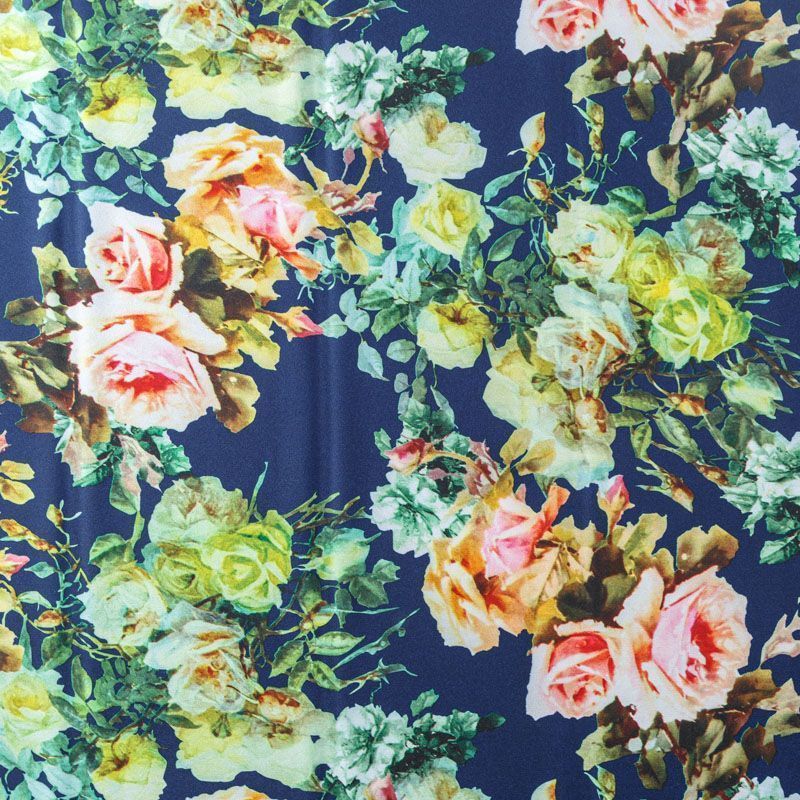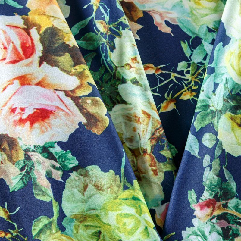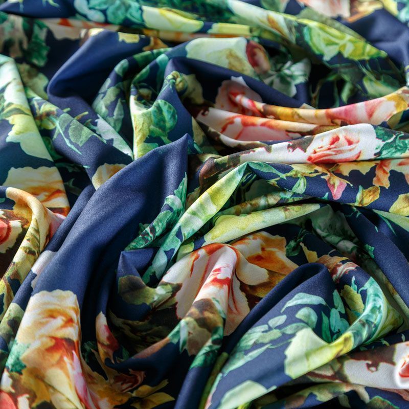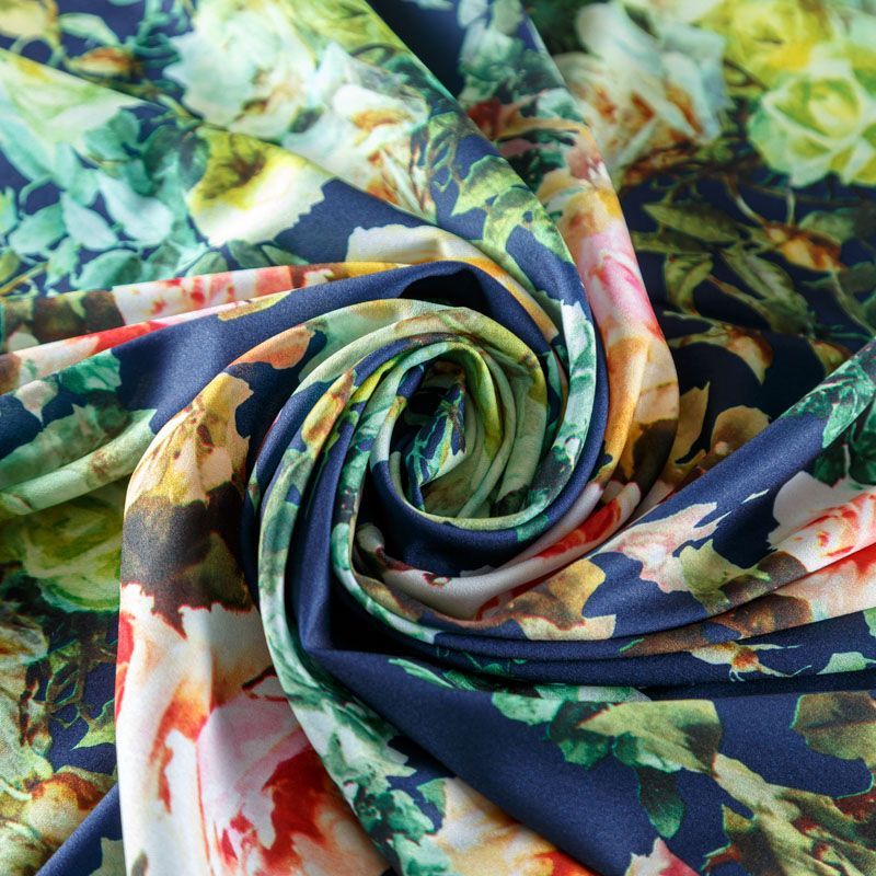Крепдешин синтетический 029-08354 темно-синий принтованный в Казани