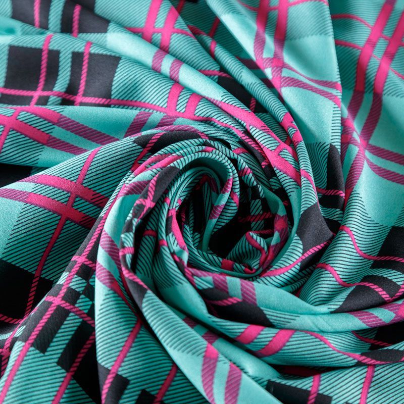 Крепдешин синтетический 029-08388 бирюзовый принтованный в Казани