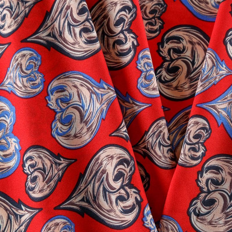 Крепдешин синтетический 029-08858 красный принтованный