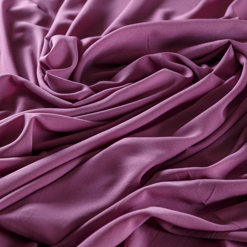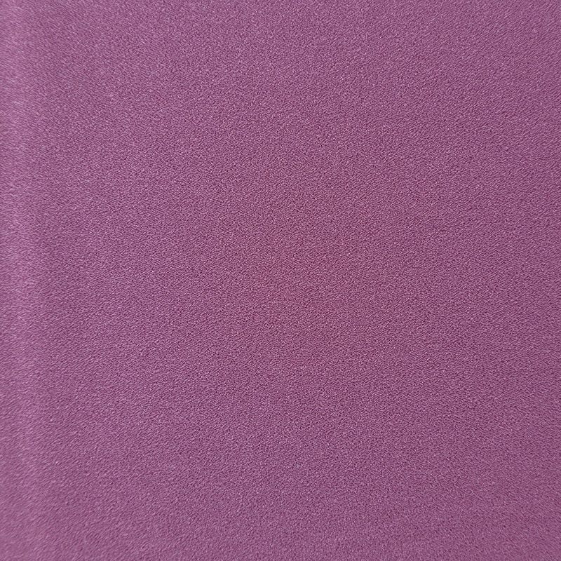Крепдешин сиреневого оттенка, тонкий, легкий, фактурный, приятный на ощупь. Очень пластичный, тянется за счет эластана в составе, прекрасно драпируется и струится. Ткань слегка просвечивает, можно использовать подклад. Идеально будет смотреться в платье, юбке, тунике, рубашке или блузке.