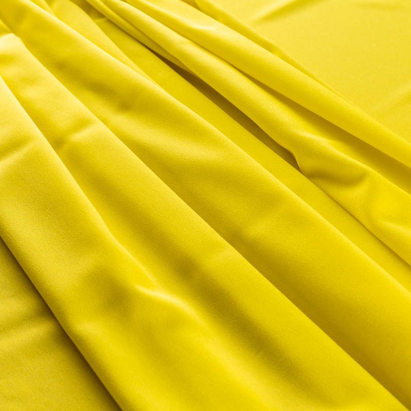 Крепдешин красивого яркого желтого оттенка, тонкий, легкий, фактурный, приятный на ощупь. Очень пластичный, прекрасно драпируется и струится. Ткань слегка просвечивает, можно использовать подклад. Идеально будет смотреться в платье, юбке, тунике, рубашке или блузке.