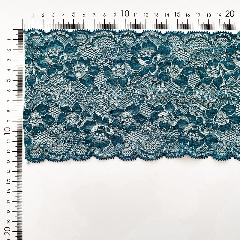 Эластичное кружево сочетает в себе мягкость, прочность и красоту, благодаря своей упругости оно долго не теряет первоначальную форму. Используется для пошива нижнего белья, а так же применяется как отделочный декор в одежде.