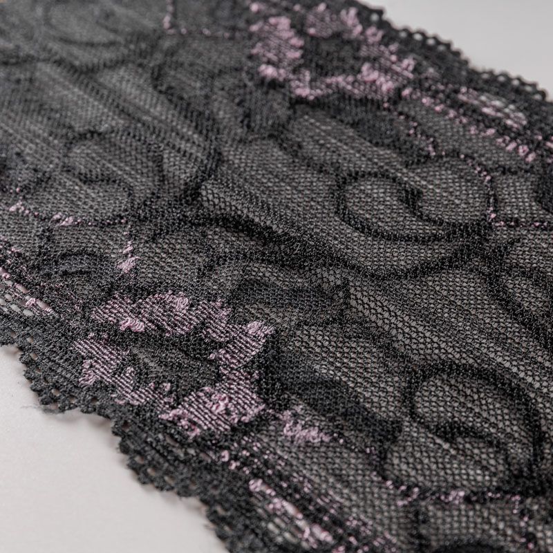 Кружево эластичное 150 мм Ф01-0157 черно-розовый