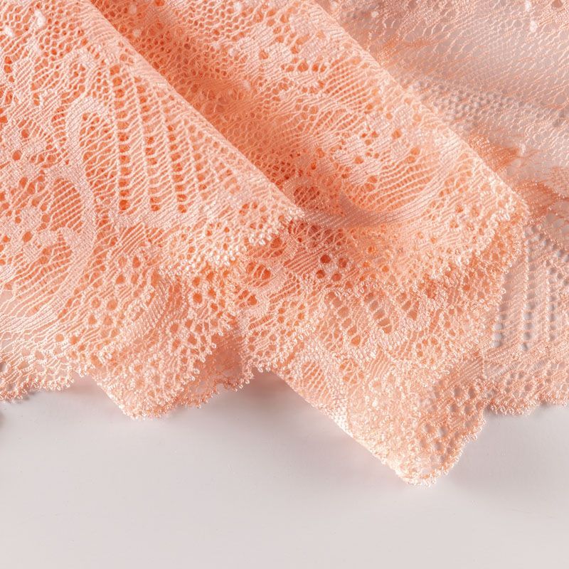 Эластичное кружево сочетает в себе мягкость, прочность и красоту, благодаря своей упругости оно долго не теряет первоначальную форму. Используется для пошива нижнего белья, а так же применяется как отделочный декор в одежде.