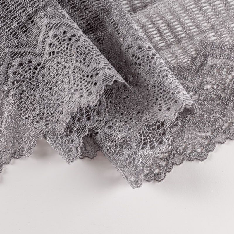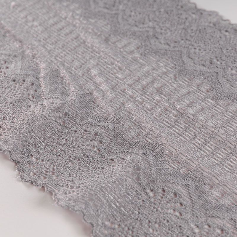 Эластичное кружево сочетает в себе мягкость, прочность и красоту, благодаря своей упругости оно долго не теряет первоначальную форму. Используется для пошива нижнего белья, а так же применяется как отделочный декор в одежде.