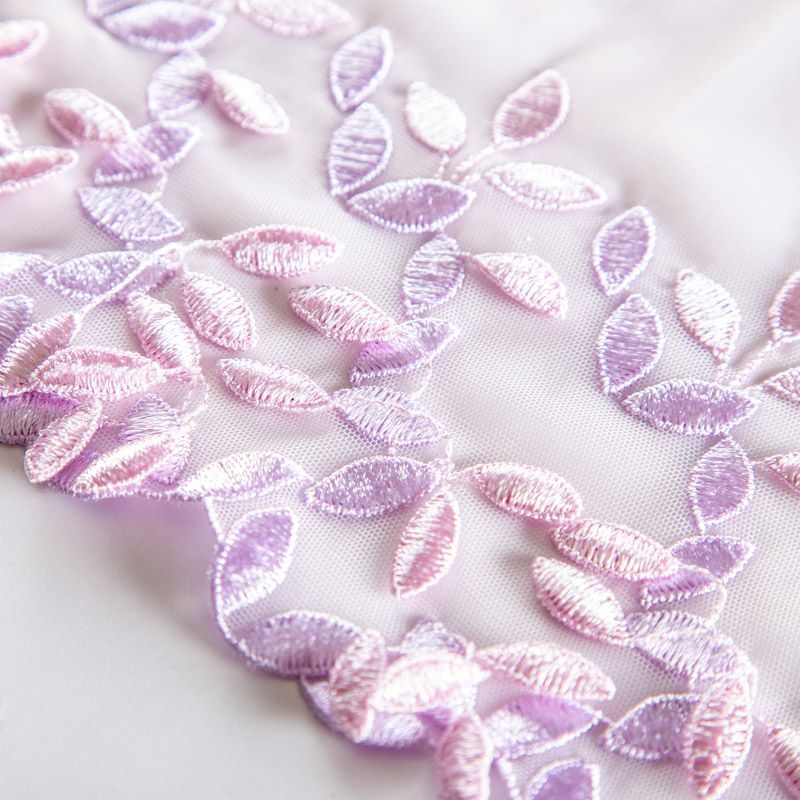Эластичное кружево сочетает в себе мягкость, прочность и красоту, благодаря своей упругости оно долго не теряет первоначальную форму. Используется для пошива нижнего белья, а так же применяется как отделочный декор в одежде.