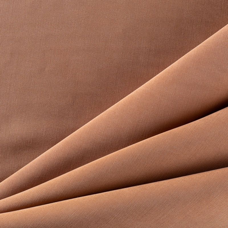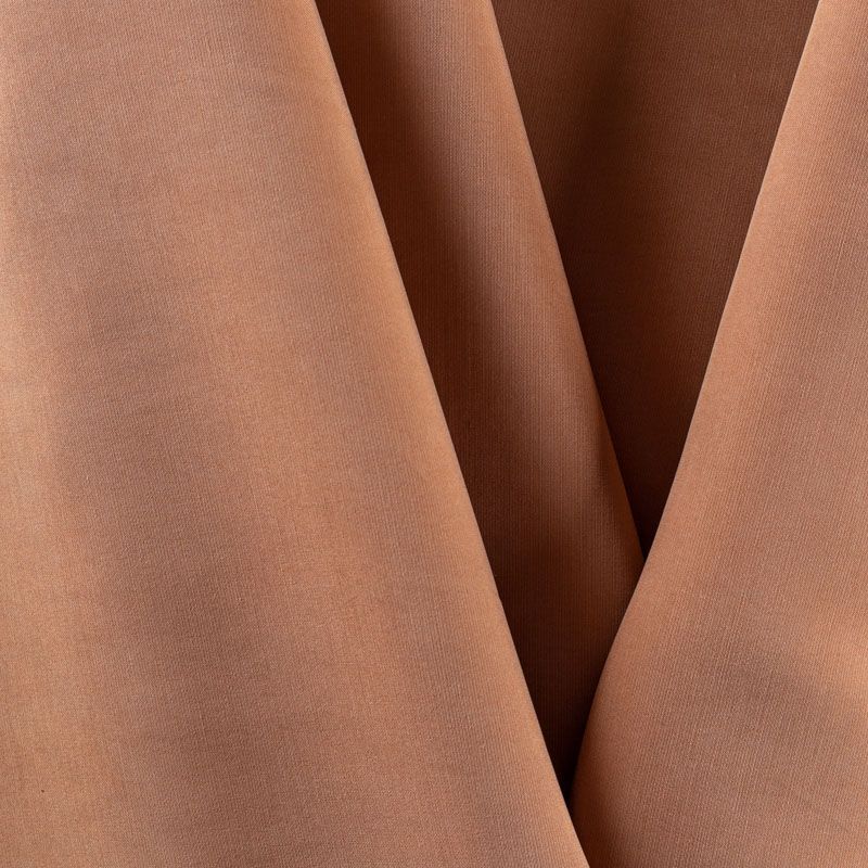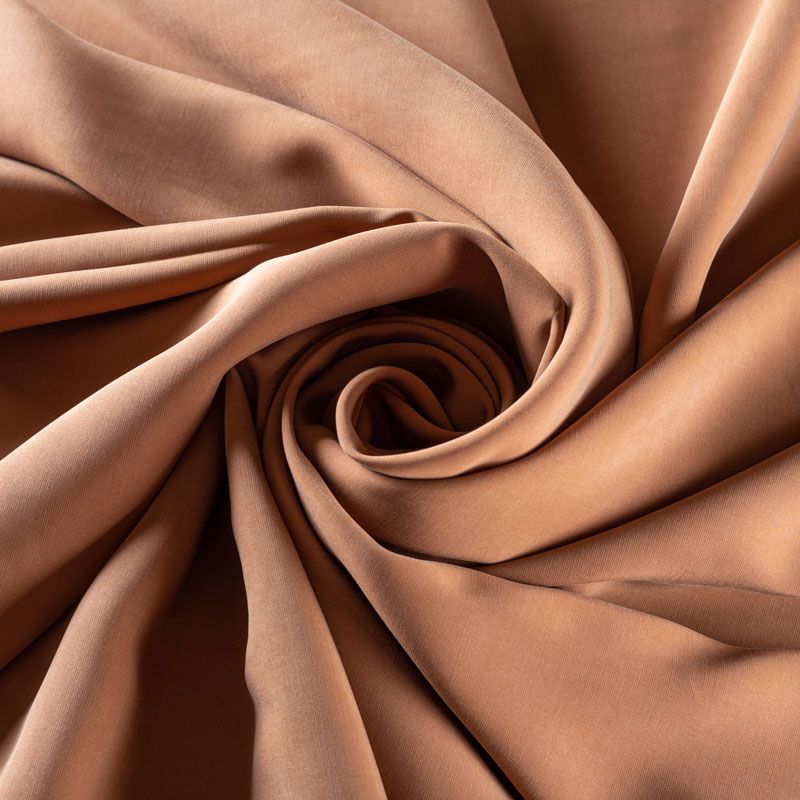 Купро плательно-костюмной плотности в теплом оттенке молочного шоколада. Ткань мягкая, пластичная, струящаяся, отлично драпируется, не просвечивает. Поверхность ткани бархатистая, похожа на мокрый шелк. Идеально подойдет для платьев свободного силуэта, брюк-палацио, юбок, шорт, туник, платья-рубашки, блузы.