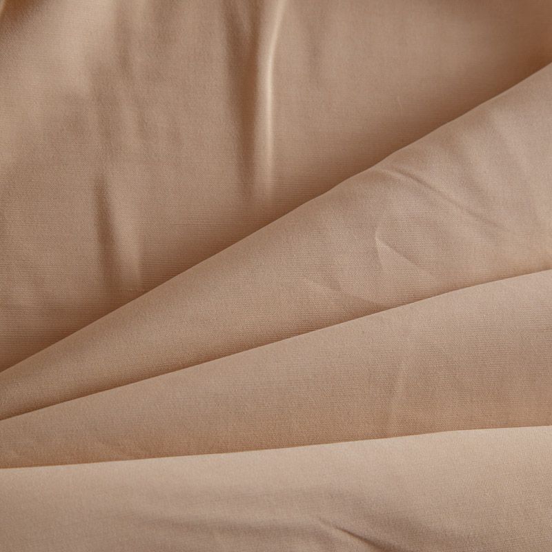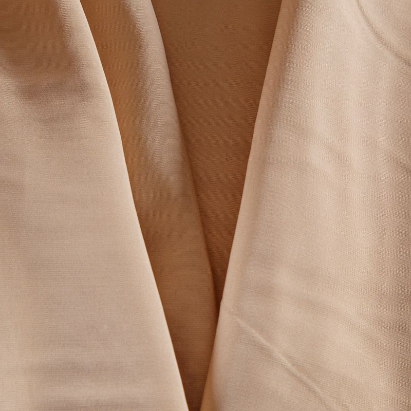 Итальянская купро плательно-костюмной плотности бежевого оттенка. Ткань мягкая, пластичная, струящаяся, отлично драпируется, не просвечивает. Поверхность ткани бархатистая, похожа на мокрый шелк. Идеально подойдет для платьев свободного силуэта, брюк-палацио, юбок, шорт, туник, платья-рубашки, блузы.