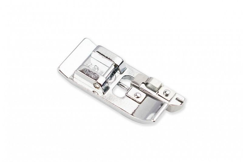 Лапка используется для иммитации оверлочного шва. Идеально подходит для средних или тяжелых тканей, таких как твид, габардин и лен. При шитье нить ложится на край ткани, при этом край не стягивается, а шов остается мягким. Лапка совместима с любыми швейными машинами с шириной зигзага не более 7 мм: