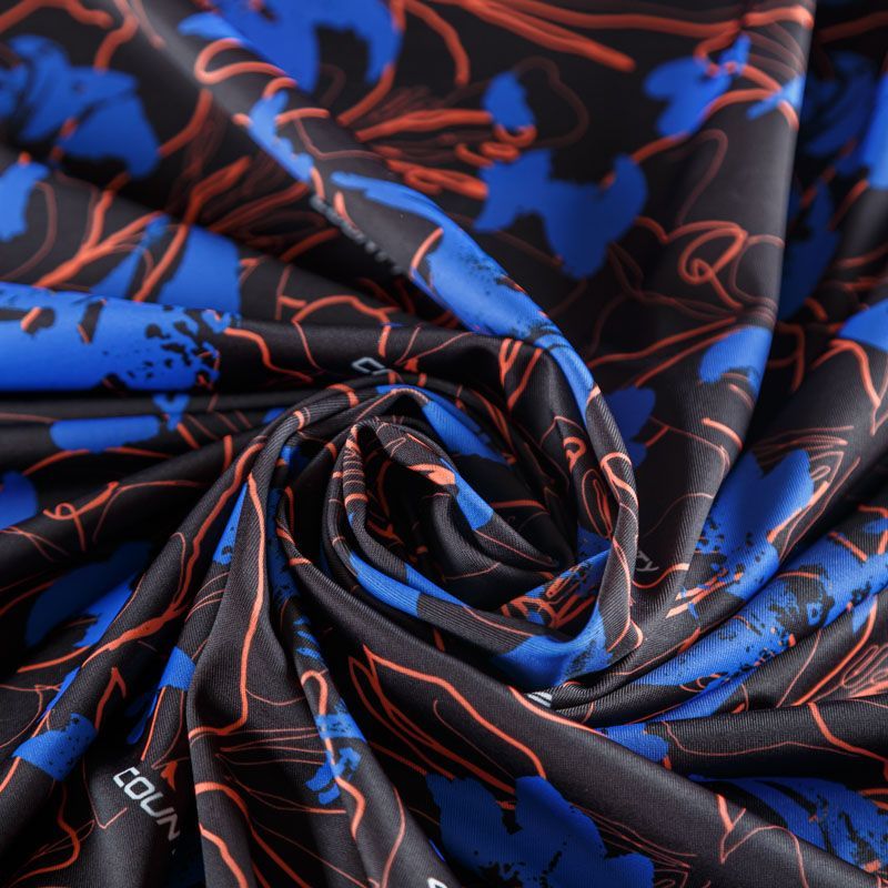 Итальяская качественная, красивая и приятная на ощупь лайкра черного цвета с фантазийным цветочным принтом в ярких неоновых оттенках. Поверхность ткани матовая и гладкая. Идеально облегает фигуру, тянется по двум направлениям, хорошо драпируется, отлично держит форму, устойчива к пилингу, долговечна и гигроскопична. Используется для пошива одежды для танцев, гимнастики, фигурного катания, для велоспорта, легкой атлетики и аэробики, фитнеса и других видов спорта, для купальников, женского белья, театральных, цирковых и эстрадных костюмов.