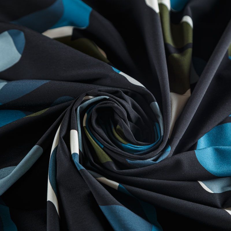 Итальяская качественная, красивая и приятная на ощупь лайкра черного цвета со стильным принтом в виде надписей. Поверхность ткани матовая и гладкая. Идеально облегает фигуру, тянется по двум направлениям, хорошо драпируется, отлично держит форму, устойчива к пилингу, долговечна и гигроскопична. Используется для пошива одежды для танцев, гимнастики, фигурного катания, для велоспорта, легкой атлетики и аэробики, фитнеса и других видов спорта, для купальников, женского белья, театральных, цирковых и эстрадных костюмов.