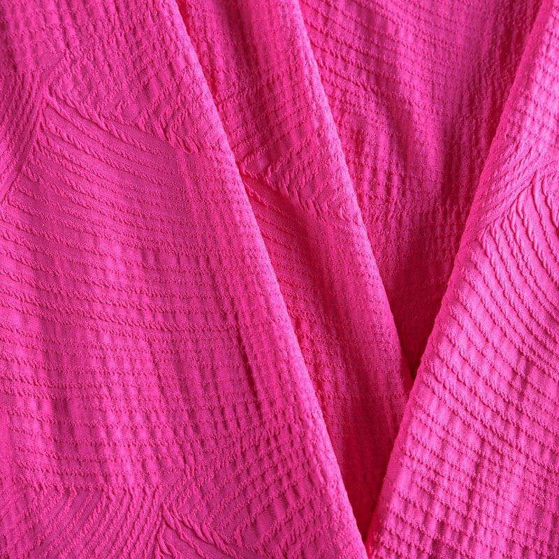 Итальянская качественная, красивая и приятная на ощупь лайкра с матовой фактурной поверхностью и жаккардовым абстрактным узором. Идеально облегает фигуру, тянется по двум направлениям, хорошо драпируется, отлично держит форму, устойчива к пилингу, долговечна и гигроскопична. Используется для пошива одежды для танцев, гимнастики, фигурного катания, для велоспорта, легкой атлетики и аэробики, фитнеса и других видов спорта, для купальников, женского белья, театральных, цирковых и эстрадных костюмов.