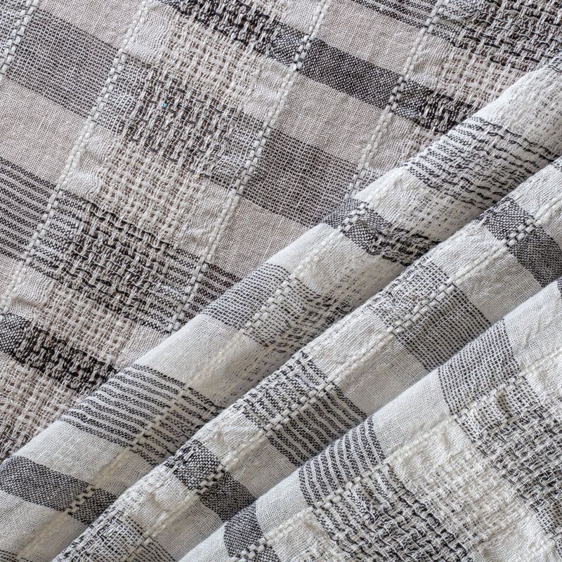 Итальянский лен с добавлением вискозы средней плотности со сложной "клетчатой" геометрией в черно-белых оттенках декорирован мелкими пайетками. Различная толщина нитей создает эффектную фактуру. Ткань пластичная, гибкая за счет плетения,  матовая, мягкая, приятная на ощупь, не рыхлая, комфортная в изделии. Отлично подойдет для пошива летних костюмов, рубашек, туник, платьев, сарафанов, юбок, жакетов, брюк или шорт, легкого пальто.
