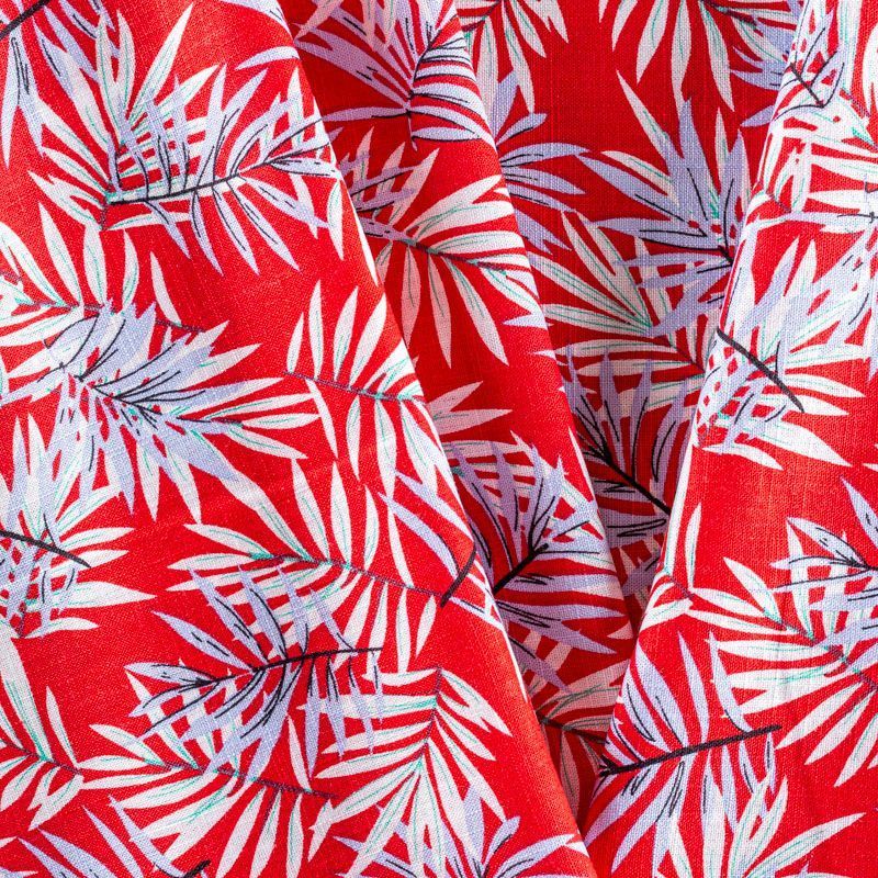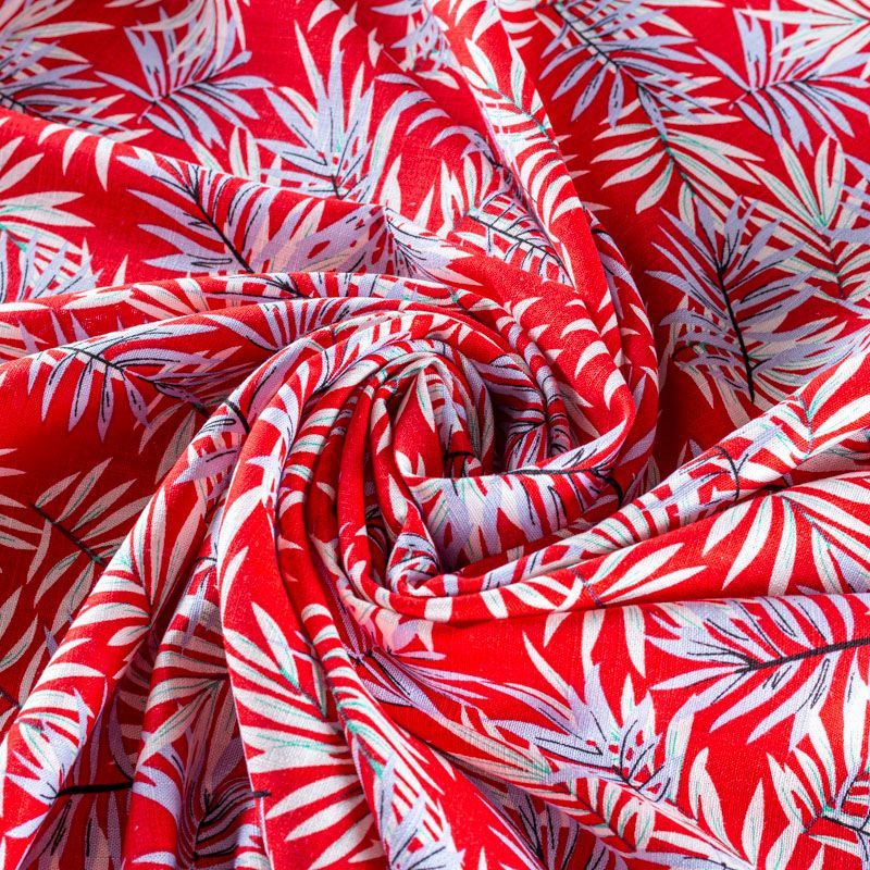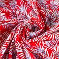 Льняная плательная ткань с добавлением вискозы красного цвета с растительным принтом. Материал прочный, с выразительной матовой рельефной поверхностью, полотняным плетением, хорошо держит форму, мягкий на ощупь, пластичный, отлично драпируется. Прекрасно подойдет для пошива летних платьев, сарафанов, юбок, рубашек, брюк и шорт.