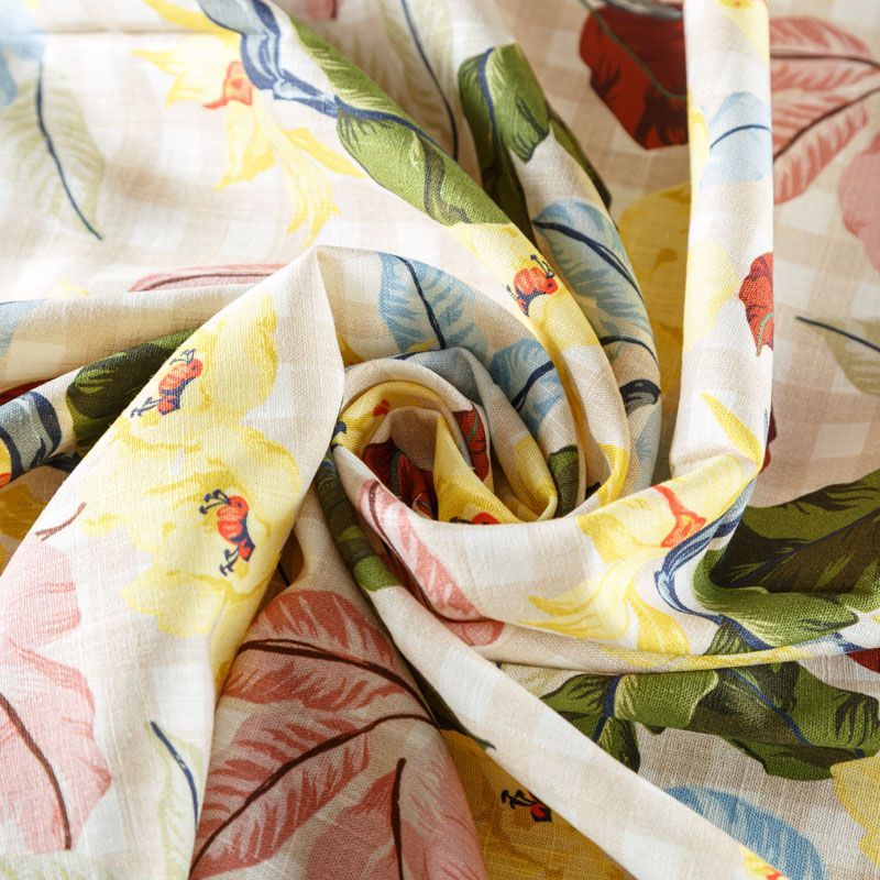 Итальянский костюмно-плательный лен с цветочным принтом на молочном фоне. Ткань прочная, имеет матовую рельефную поверхность и полотняное переплетение, отлично держит форму, пластичная, тянется за счет эластана в составе, комфортная в изделии. Отлично подойдет для пошива для летних костюмов, рубашек, туник, платьев, сарафанов, юбок, жакетов, брюк или шорт.