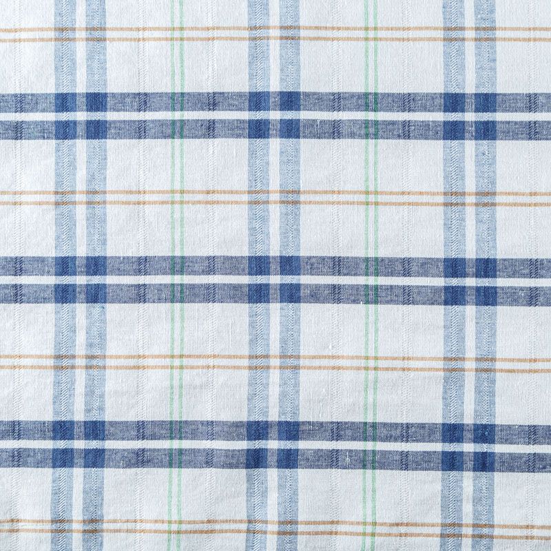 Льняная плательно-рубашечная ткань с добавлением полиэстера белого цвета с гоеметрическим принтом. Материал прочный, с выразительной матовой рельефной поверхностью, полотняным плетением, хорошо держит форму, мягкий на ощупь, пластичный, отлично драпируется. Прекрасно подойдет для пошива летних платьев, сарафанов, юбок, рубашек, брюк и шорт.
