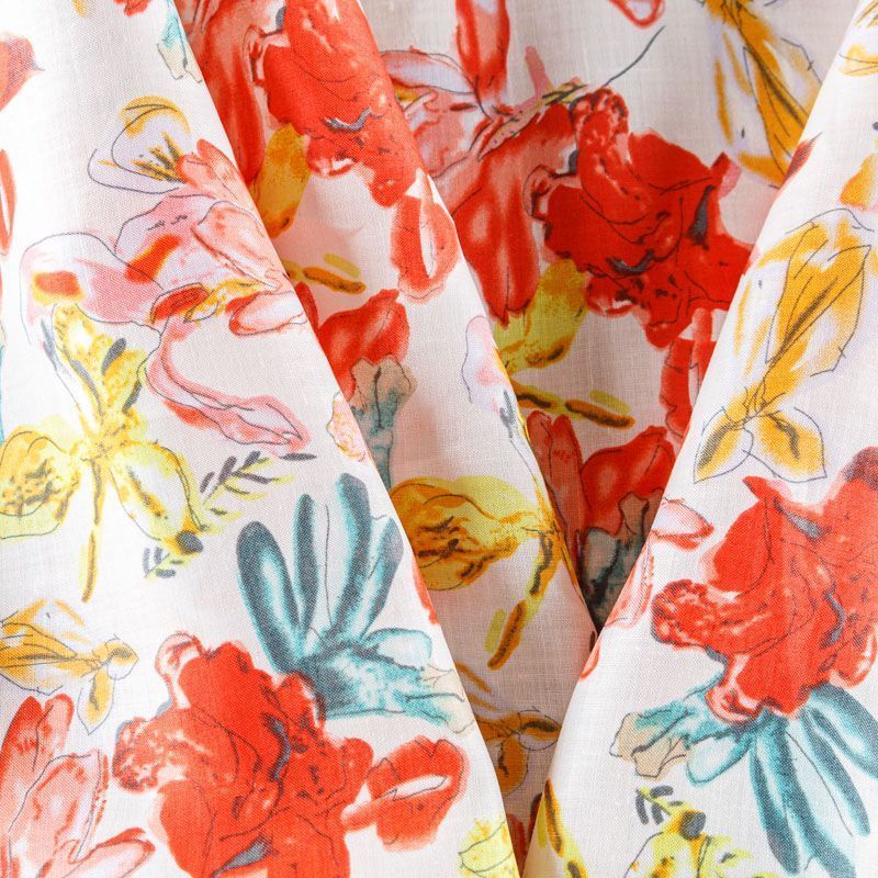 Лен натуральный 035-08127 молочный принтованный в Казани