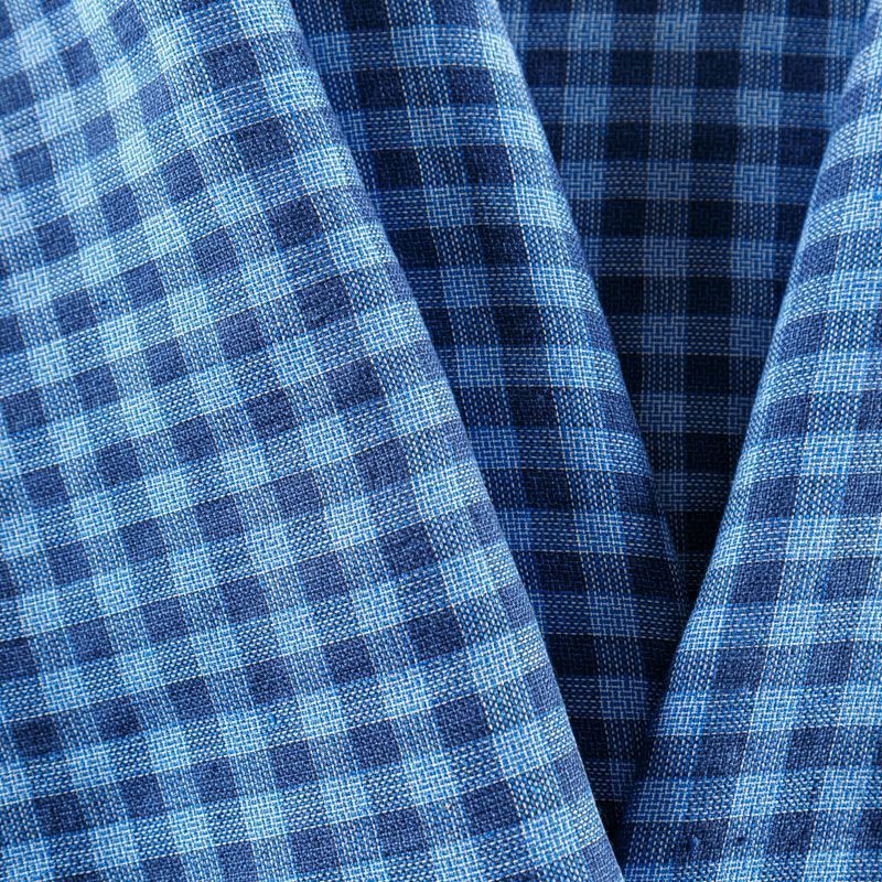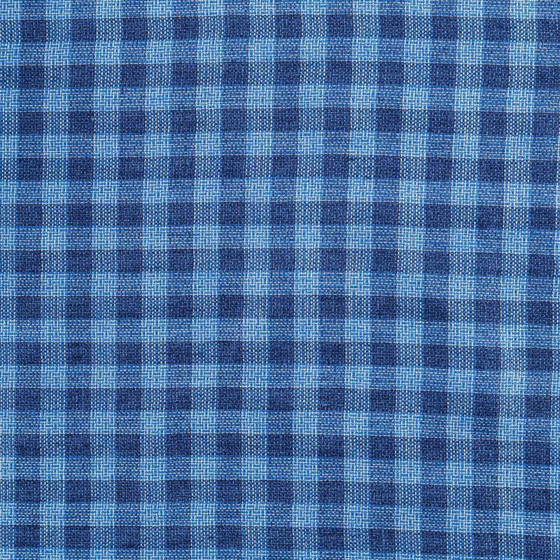 Итальянский костюмно-плательный лен в среднюю сине-голубую клетку. Ткань прочная, имееет на ощупь приятную, гладкую поверхность, а визуально - выраженный рельеф и полотняное переплетение, держит форму, пластичная. Подойдет для пошива костюмов, брюк, шорт, в том числе мужских, юбок, платьев, сарафанов, топов, комбинезонов, жакетов, кардиганов.
