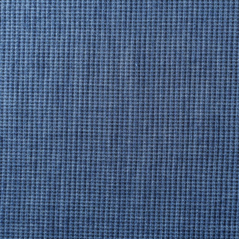 Итальянский костюмно-плательный лен синего оттенка в мелкую клеточку. Ткань прочная, имееет на ощупь приятную, гладкую поверхность, а визуально - выраженный рельеф и полотняное переплетение, держит форму, пластичная, мнется не сильно благодаря добавлению ацетата в состав материала. Подойдет для пошива костюмов, брюк, шорт, в том числе мужских, юбок, платьев, сарафанов, топов, комбинезонов, жакетов, кардиганов.