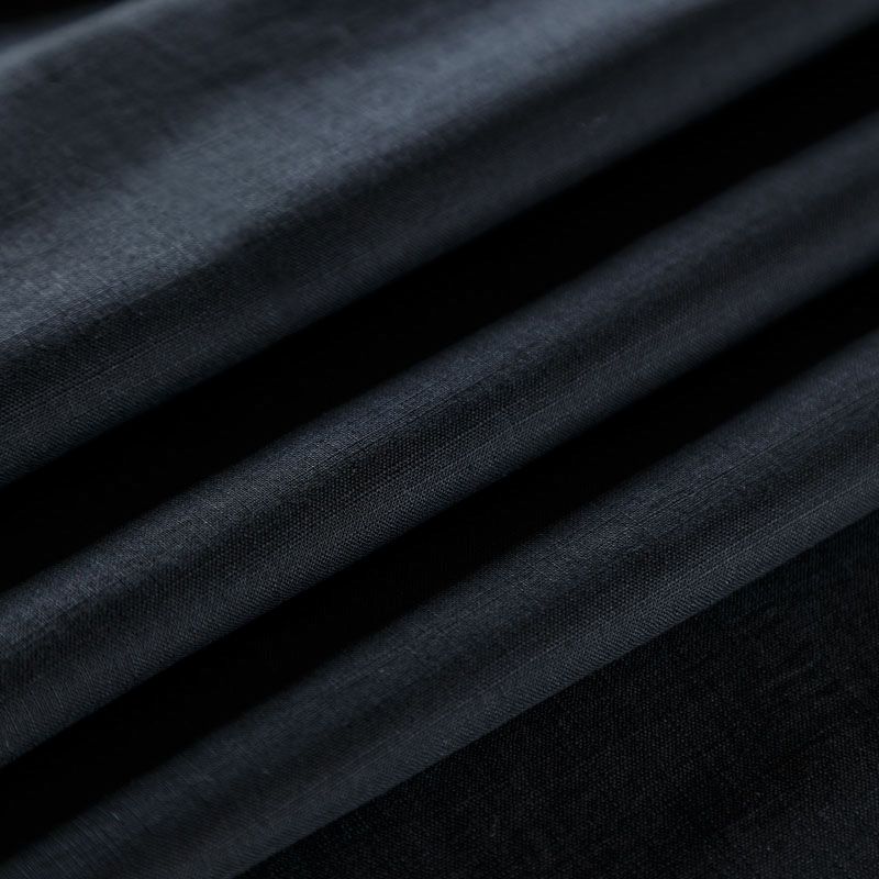 Итальянский плательно-рубашечный лен в черном оттенке. Ткань прочная, имееет на ощупь приятную, гладкую поверхность, а визуально - выраженный рельеф и полотняное переплетение, плачтичная, хорошо драпируется. Подойдет для пошива широких брюк, шорт, рубашек, туники, юбок, платьев, сарафанов, топов, комбинезонов.