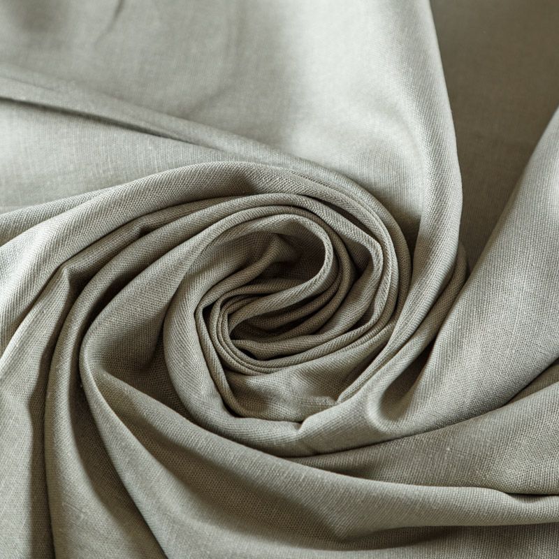 Плательно-рубашечный лен с добавлением вискозы и эластана в натуральном оттенке. Ткань прочная, имееет на ощупь приятную, гладкую поверхность, а визуально - выраженный рельеф и полотняное переплетение, плачтичная, хорошо драпируется. Подойдет для пошива широких брюк, шорт, рубашек, туники, юбок, платьев, сарафанов, топов, комбинезонов.