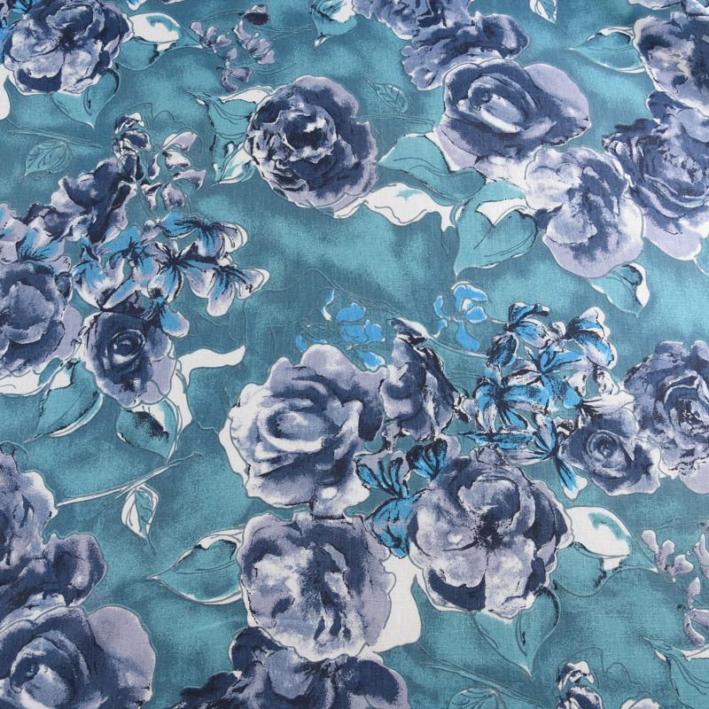 Лен натуральный 035-11767 темно-бирюзовый принтованный в Казани