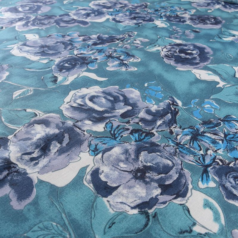 Лен натуральный 035-11767 темно-бирюзовый принтованный