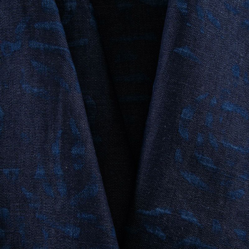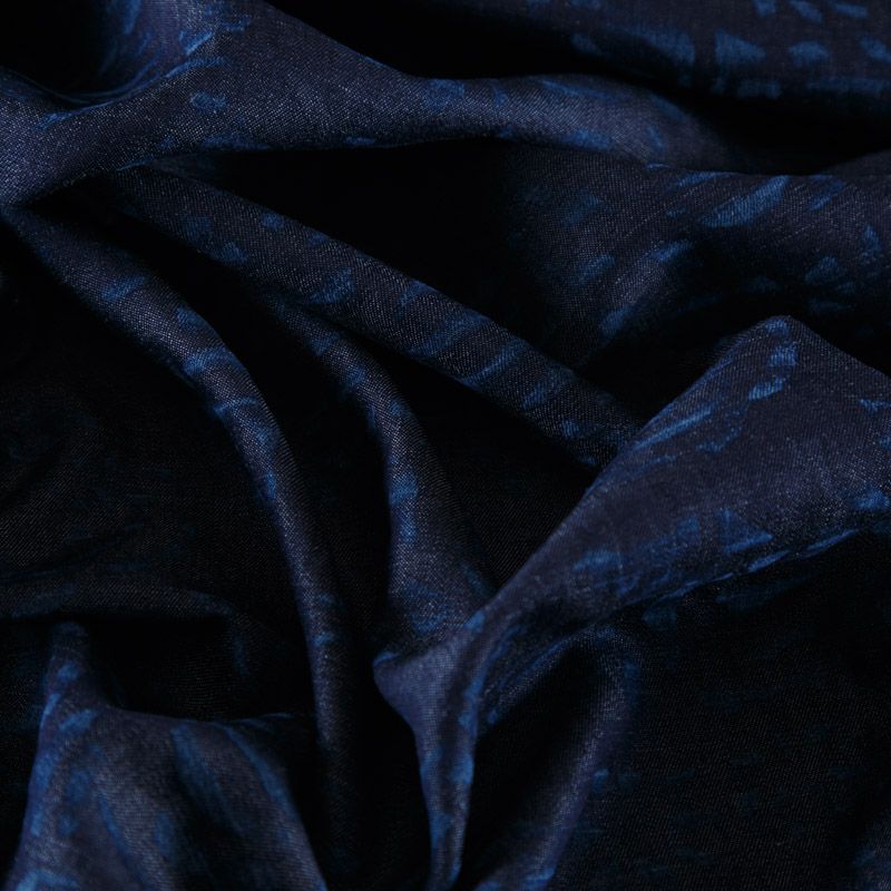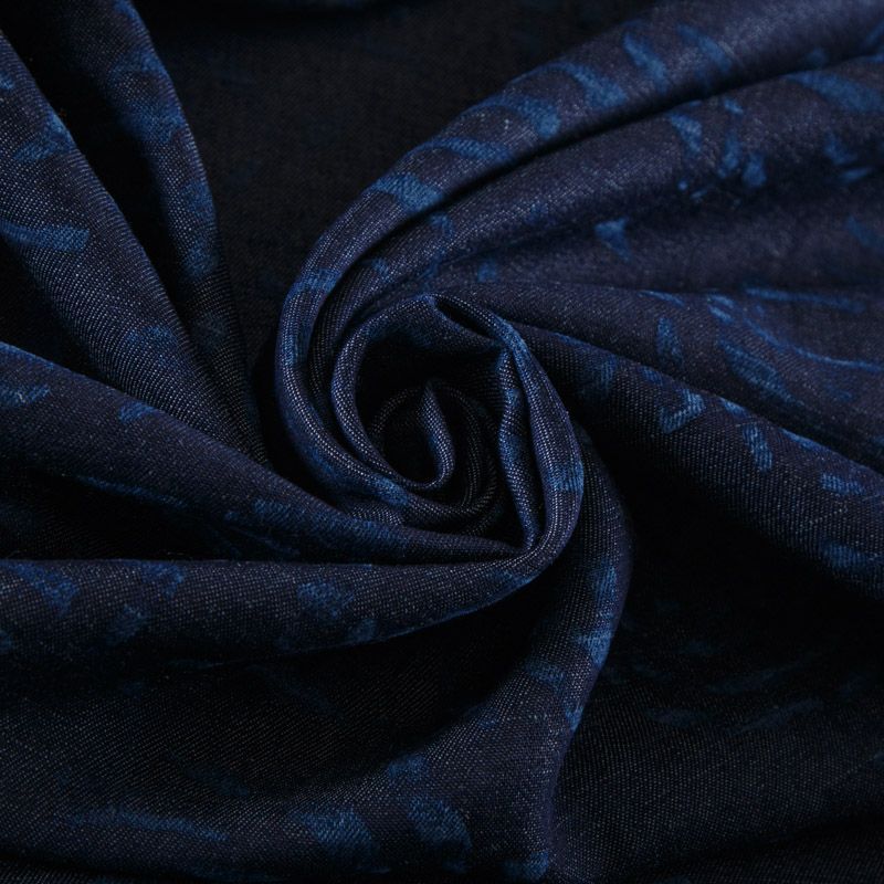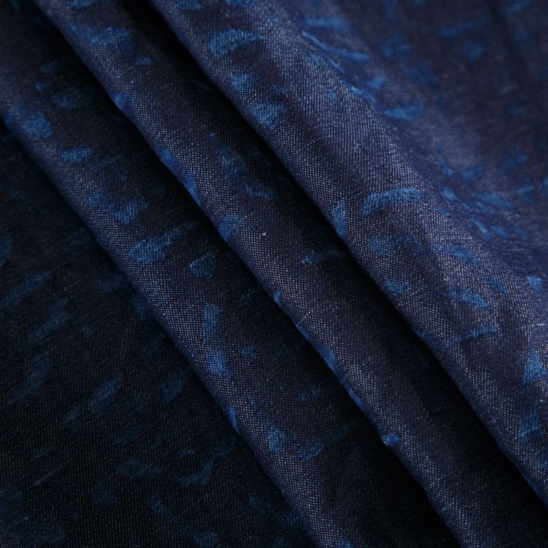 Лен натуральный 035-12097 синий джинс принтованный в Казани