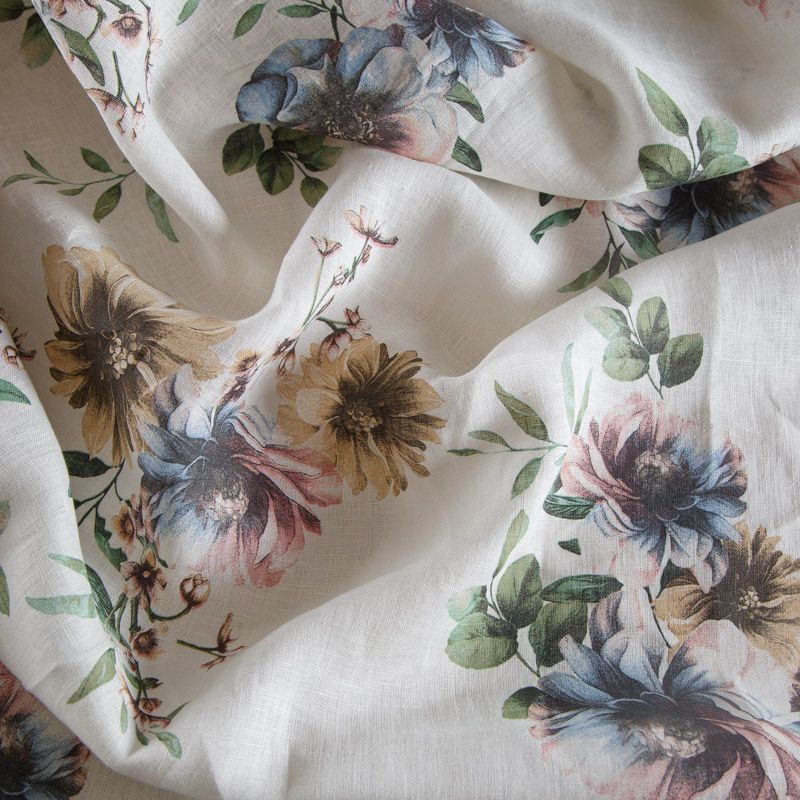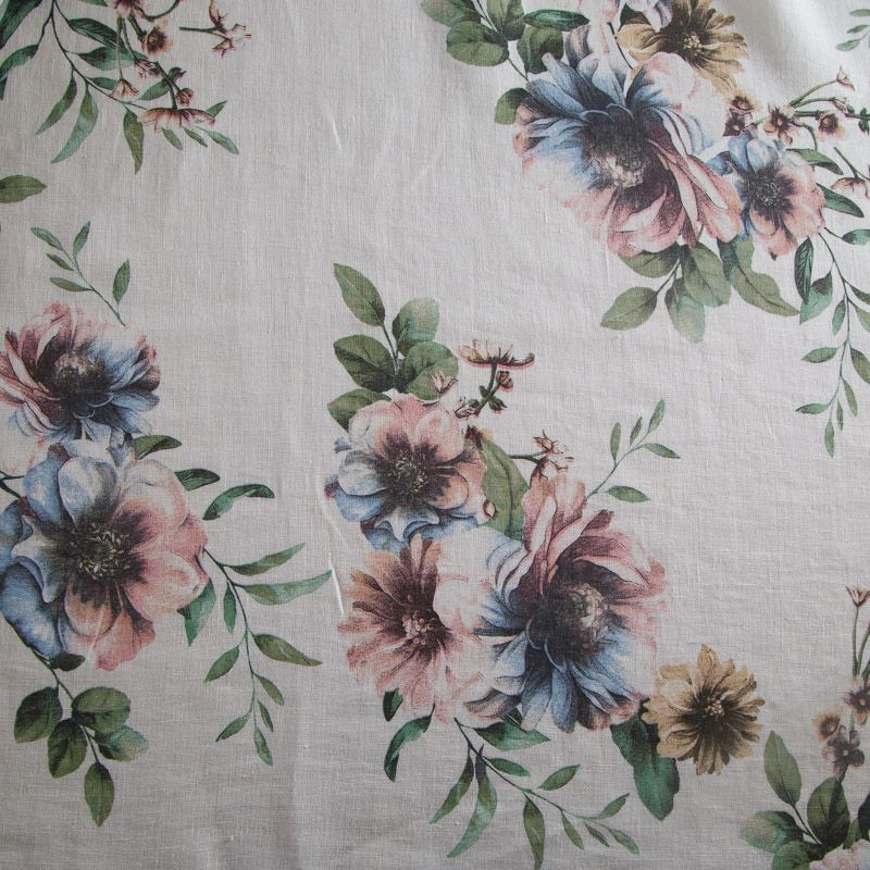 Лен натуральный 035-14443 молочный принтованный в Казани