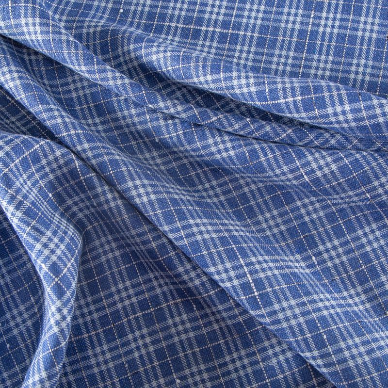 Лен натуральный 035-19980 сине-голубой клетка в Казани