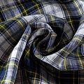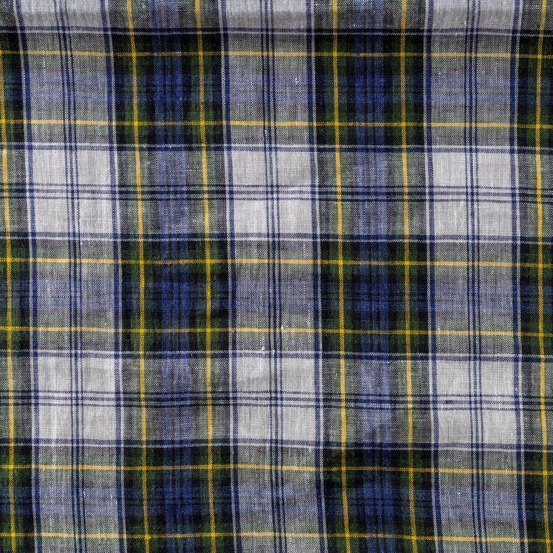 Прочный, выразительная матовая рельефная поверхность, полотняное переплетение, хорошо держит форму, жестковатый на ощупь, но комфортный в изделии. Прекрасно подойдет для пошива летних платьев, сарафанов, туники, юбки, рубашки, брюк и шорт. Льняная плательная ткань молочного цвета со сложной красивой многоцветной клеткой.