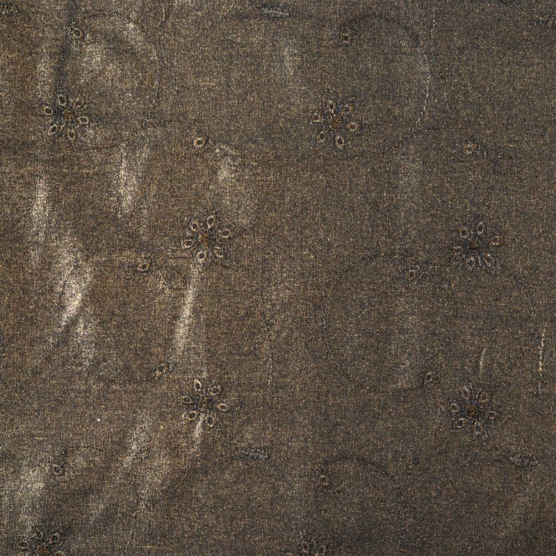 Лен натуральный с вышивкой и напылением 035-07918 бронзовый