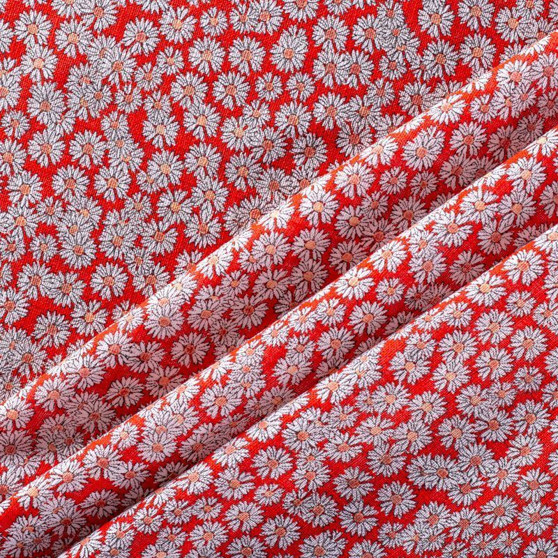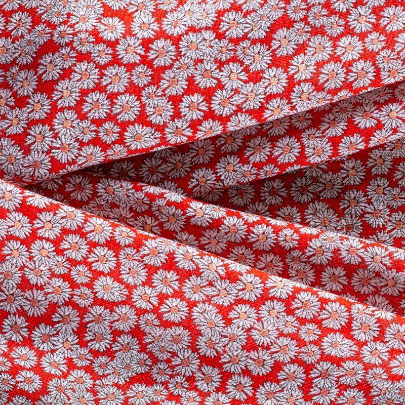 Итальянский плательно-рубашечный лен с добавлением вискозы с мелким цветочным принтом на ярком красном фоне. Ткань прочная, но тонкая, имееет выразительную матовую рельефную поверхность и полотняное переплетение, хорошо держит форму. Подойдет для пошива весенне-летних платьев, брюк, шорт, топов, сарафанов.