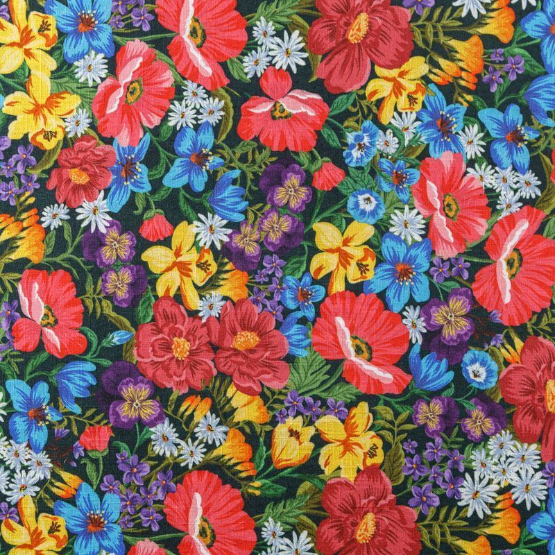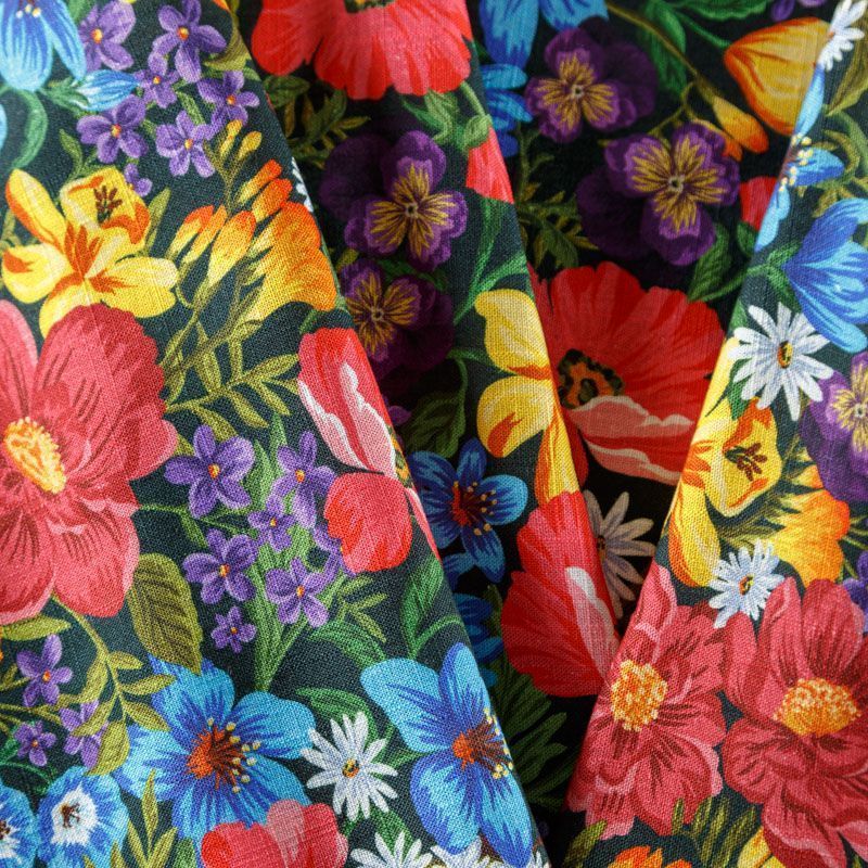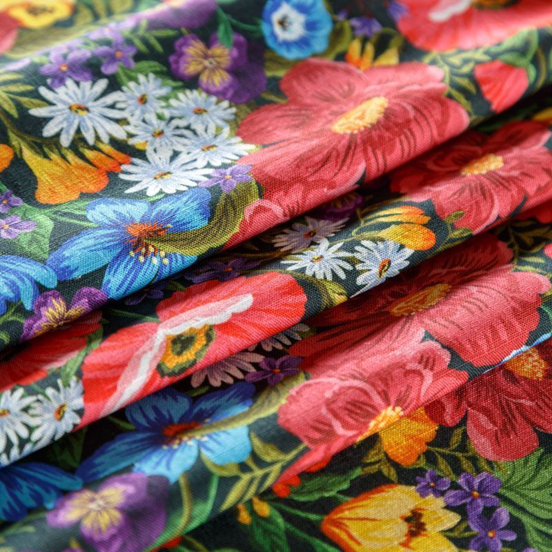 Лен-вискоза 035-08440 черный принтованный в Казани