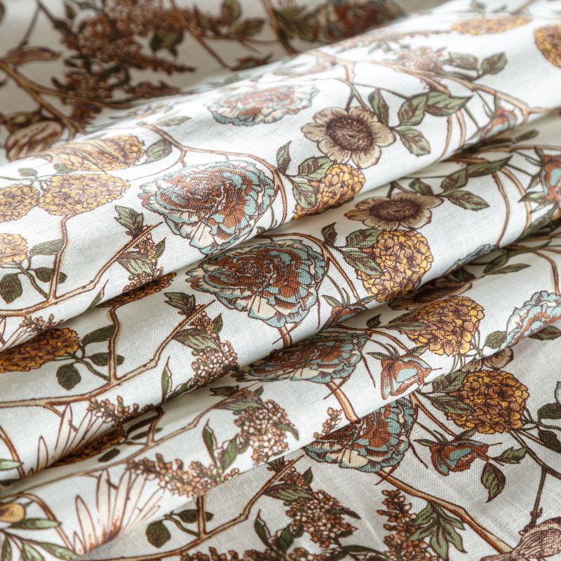 Итальянский плательно-рубашечный лен с добавлением вискозы средней плотности с растительным принтом в спокойных оттенках. Ткань прочная, имеет матовую рельефную поверхность и полотняное переплетение, немного просвечивает, отлично держит форму, пластичная, комфортная в изделии. Отлично подойдет для пошива для летних костюмов, рубашек, туник, платьев, сарафанов, юбок, жакетов, брюк или шорт.