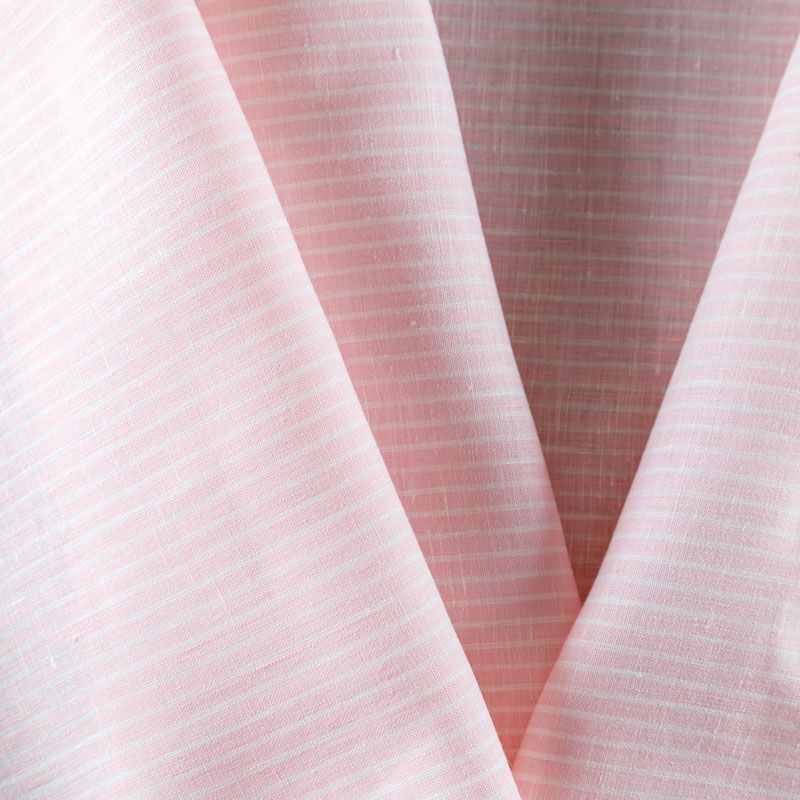 Итальянский костюмно-плательный лен с добавлением вискозы в вертикальную тонкую полоску в розовом оттенке. Ткань прочная, имееет на ощупь приятную, гладкую поверхность, а визуально - выраженный рельеф и полотняное переплетение, держит форму, пластичная. Подойдет для пошива костюмов, брюк, шорт, юбок, платьев, сарафанов, топов, комбинезонов, жакетов, кардиганов.