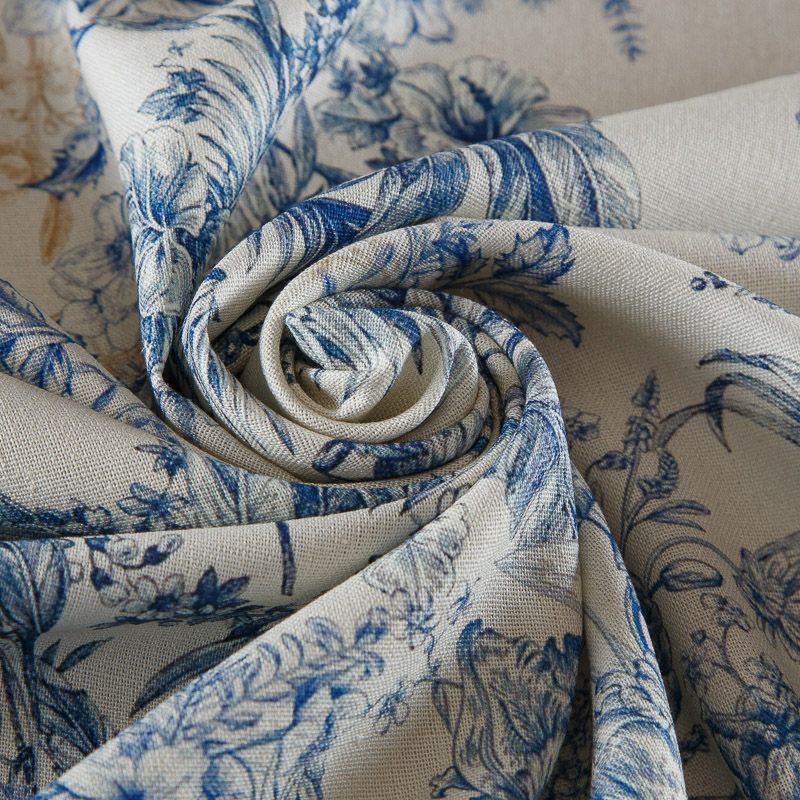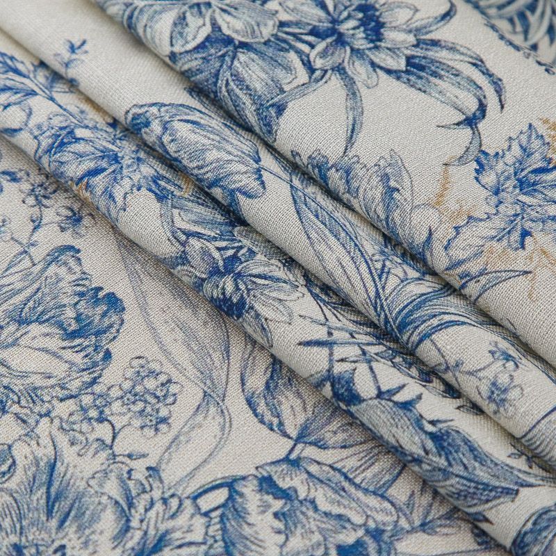 Лен-вискоза стрейч 035-17775 молочный принтованный в Казани