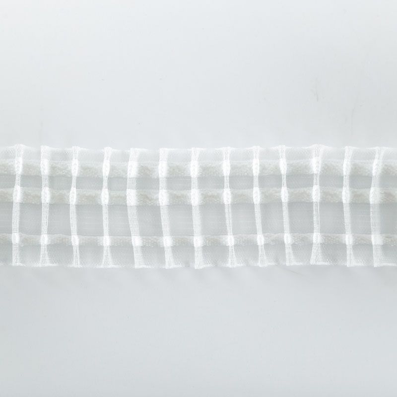 Шторная лента прозрачная для тюлей и портьерных тканей с карандашной сборкой. Сокращение - 1:1,5, раппорт - 4,5 см, 2 ряда непрозрачных белых кармашков, крепление - крючки.