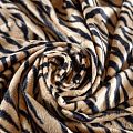 Коротковорсовый мех с принтом, имитирующим окрас тигра в естественных оттенках. Ткань мягкая, плотная, пластичная. Ворс матовый, имеет направление. Идеально подойдет для пошива шубки, мехового пальто или отделки.