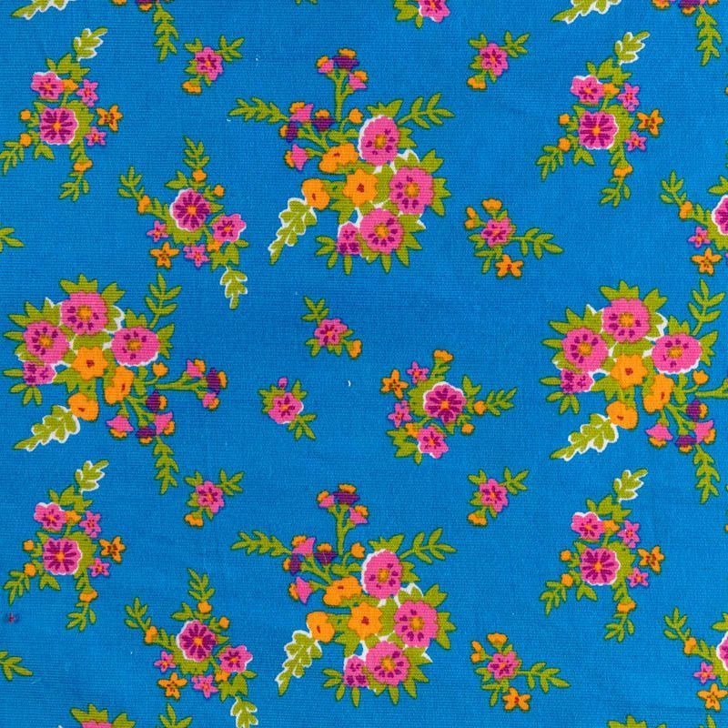 Очень приятная, мягкая, достаточно легкая яркая ткань с мелкими букетиками цветочков. Микровельвет имеет почти незаметный рубчик. Основа ткани не плотная, поэтому он отлично подойдет для пошива  платья, рубашки, ветровки или детской одежды.