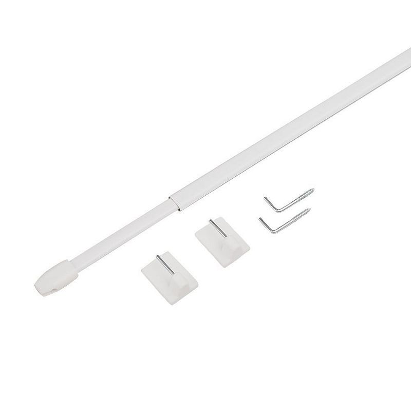 Телескопический мини-карниз «Кафе» — это стальной одинарный карниз, который предназначен для оформления помещений лёгкими шторами «Кафе». Комплектация: стальная телескопическая трубка с регулируемой длиной от 80 до 130 см и овальным сечением 5,5х10 мм и 4,5х8 мм, 2 пластиковых кронштейна с металлическими стержнями-фиксаторами и двухсторонним скотчем, 2 г-образных шурупа. Крепление мини-карниза осуществляется непосредственно на оконную раму окна. Способы установки карниза: 1. на металлопластиковую раму с помощью пластиковых кронштейнов с двухсторонним скотчем. Для этого достаточно обезжирить поверхность, на которую крепится карниз, снять защитную пленку с монтажного скотча и затем с усилием прижать кронштейны к поверхности, удерживая в течение 1 минуты; 2. для деревянных окон можно использовать специальные г-образные шурупы-костыли, которые вкручиваются в раму в предварительно сделанное отверстие.