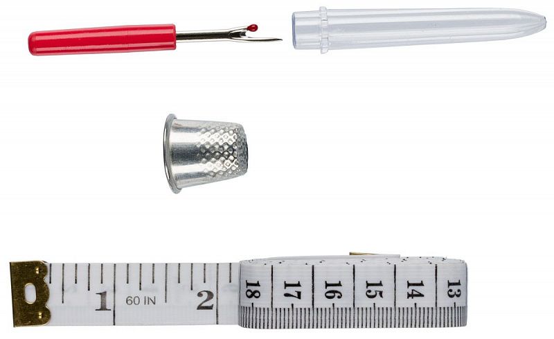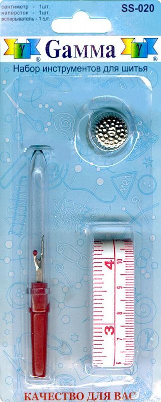 В набор входят: сантиметр, наперсток, вспарыватель. Инструменты используются в шитье, крое и мелком ремонте одежды.