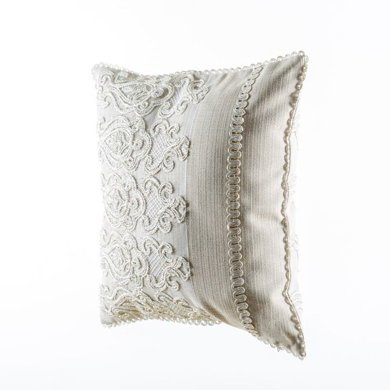 Оригинальная дизайнерская наволочка на подушку 40х40 см. Декорирована ажурной тесьмой и тюлевым полотном. Потайная молния расположена в нижнем шве. Декоративные подушки сделают акцет на цветовой гамме Вашего помещения, подчеркнут особенности интерьерного стиля или тематику оформления. Внимание! Подушка-вкладыш или синтепон приобретаются отдельно.